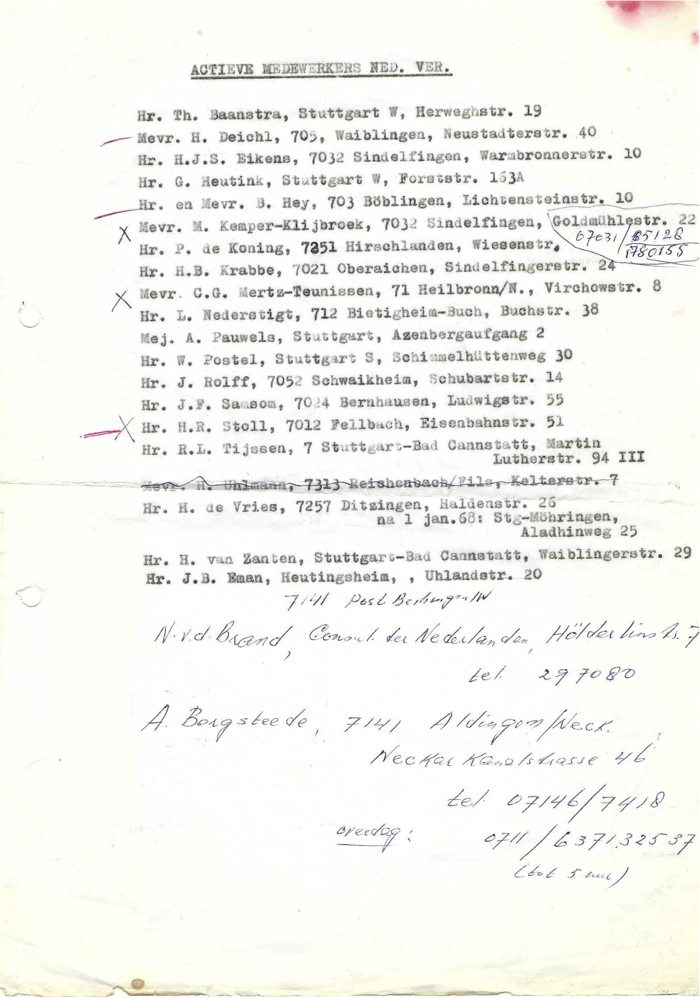 Daarom moest de Nederlandse vereniging opnieuw als “eingetragener Verein” onder de naam Nederlandse Verenging in Stuttgart e.V. worden opgericht.